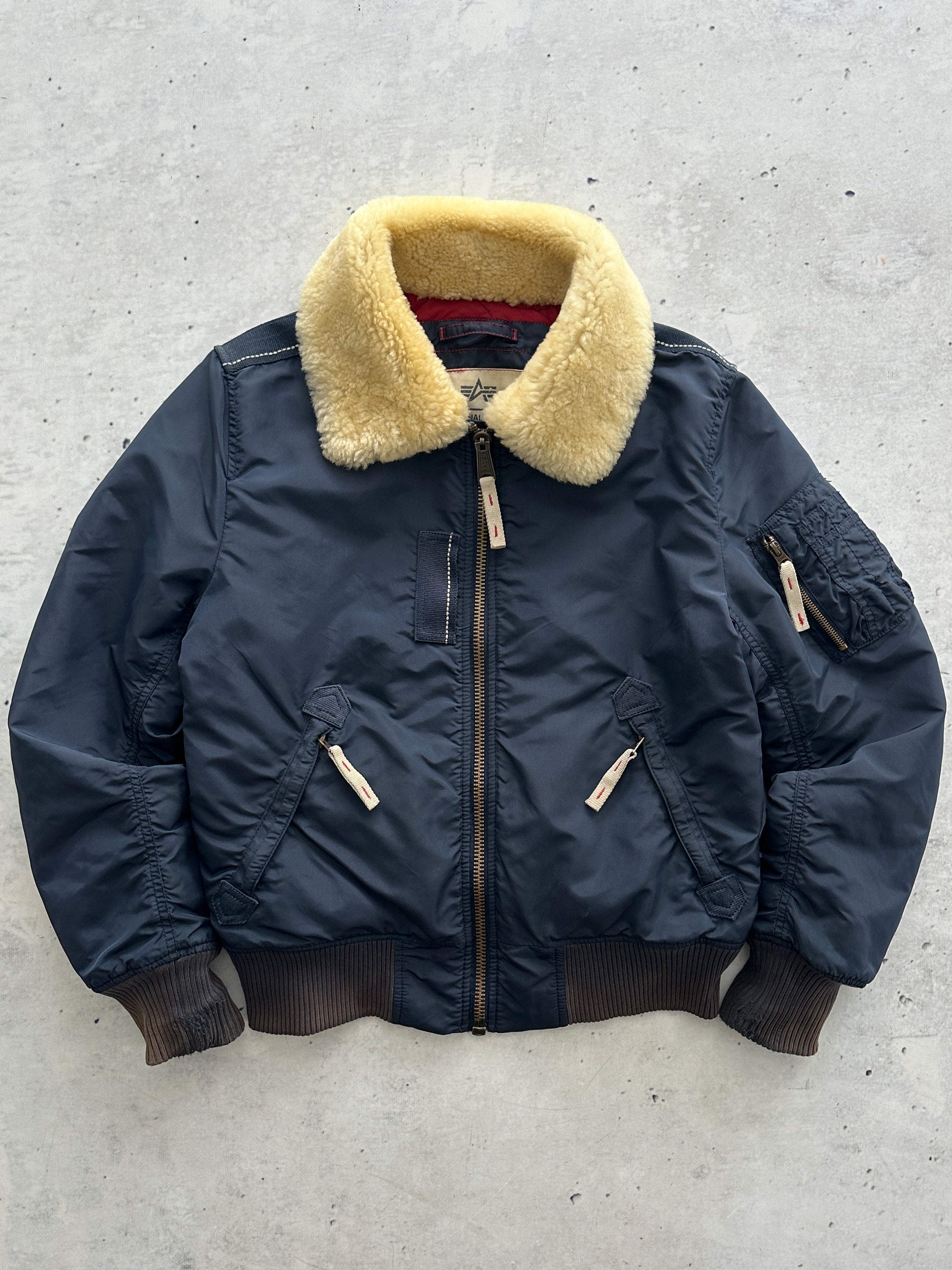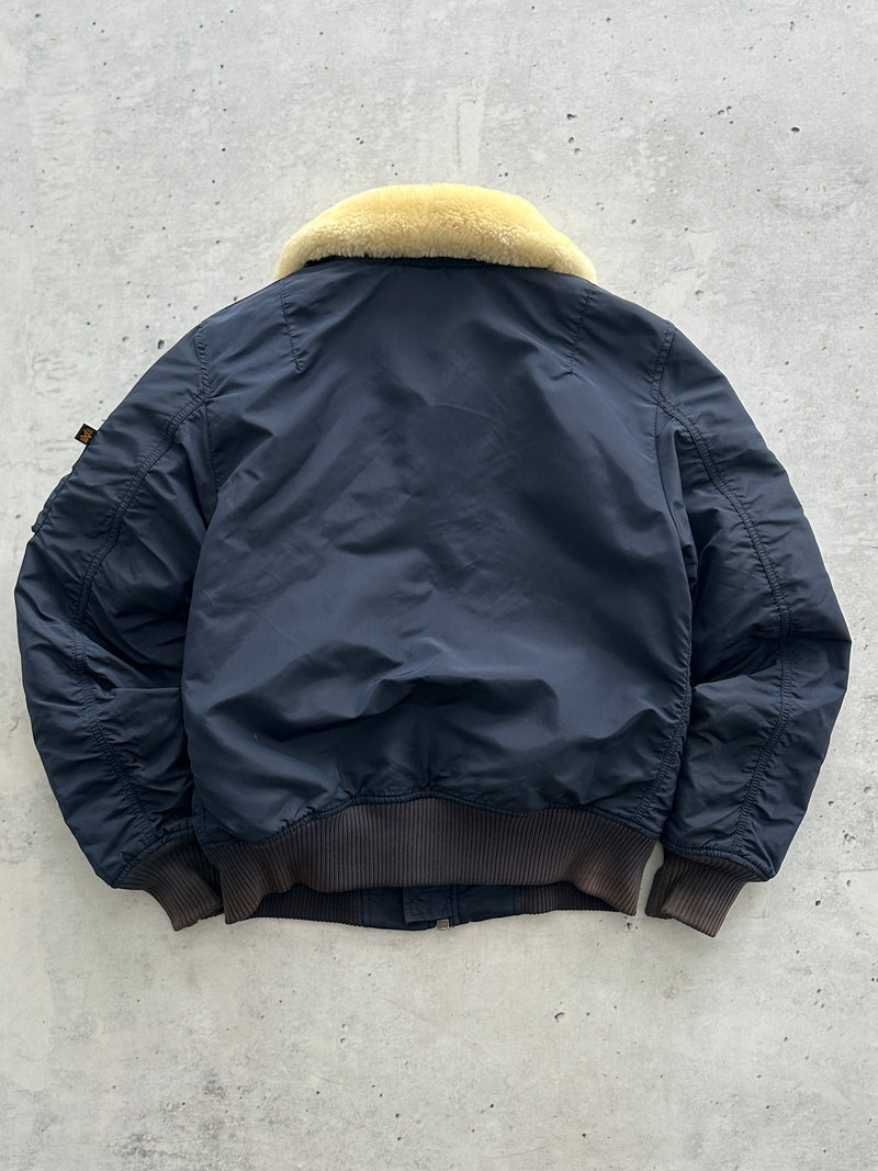 Alpha Industries Injector III Shearling Collar Zip Up Bomber Jacket (S)