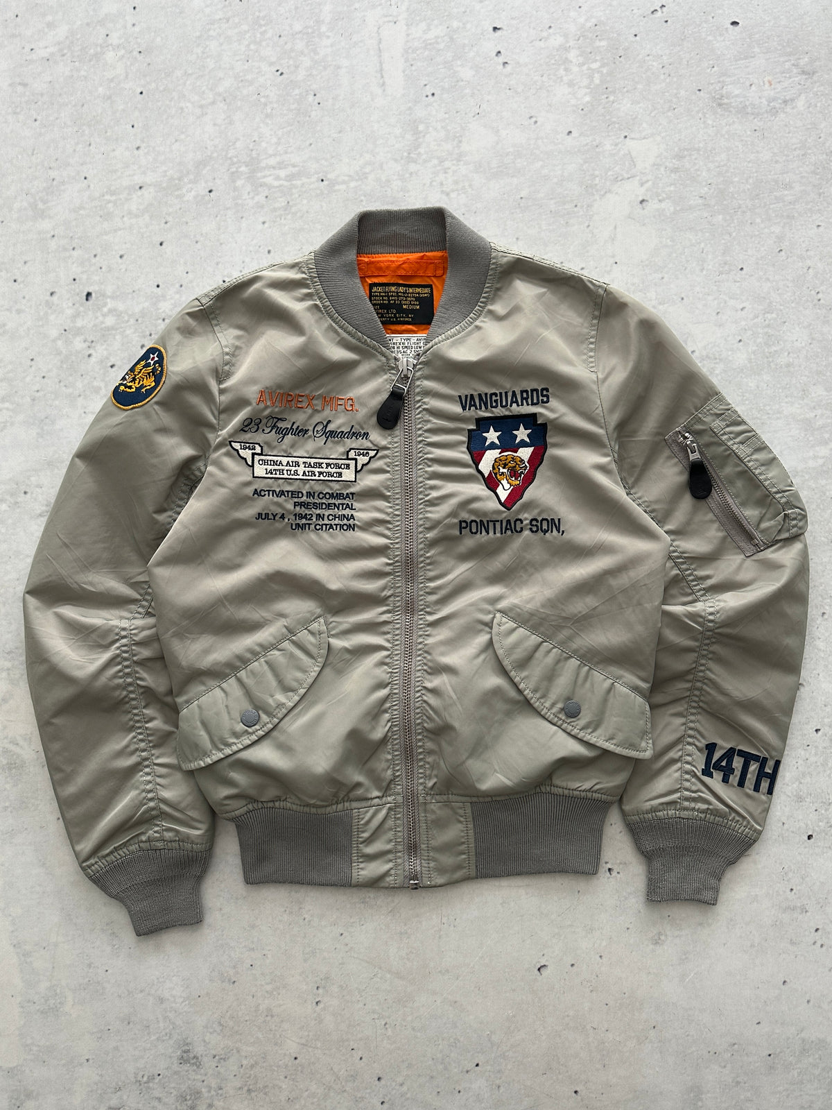 Avirex MA-1 Embroidered Patch Zip Up Bomber Jacket (Women's S)