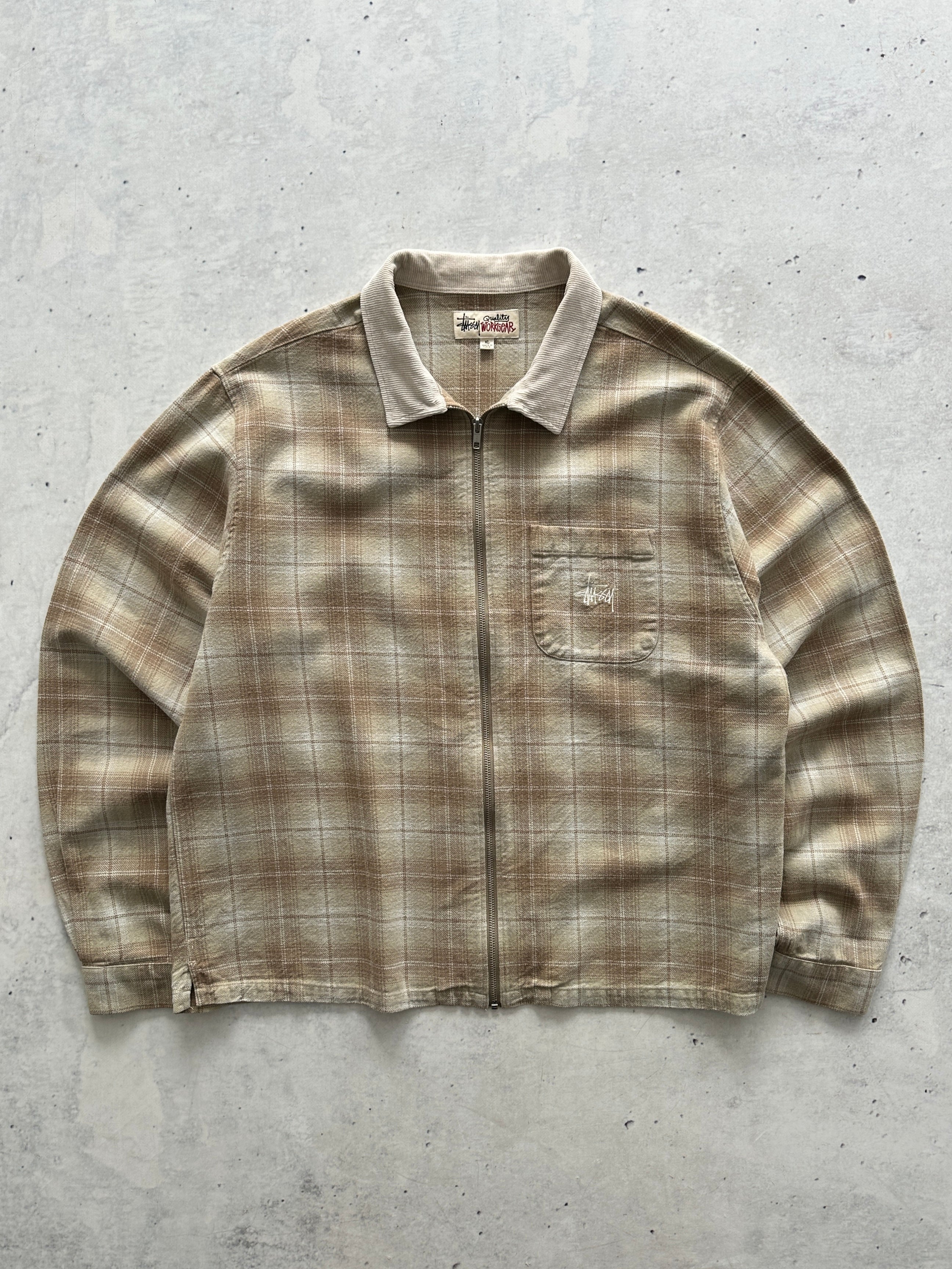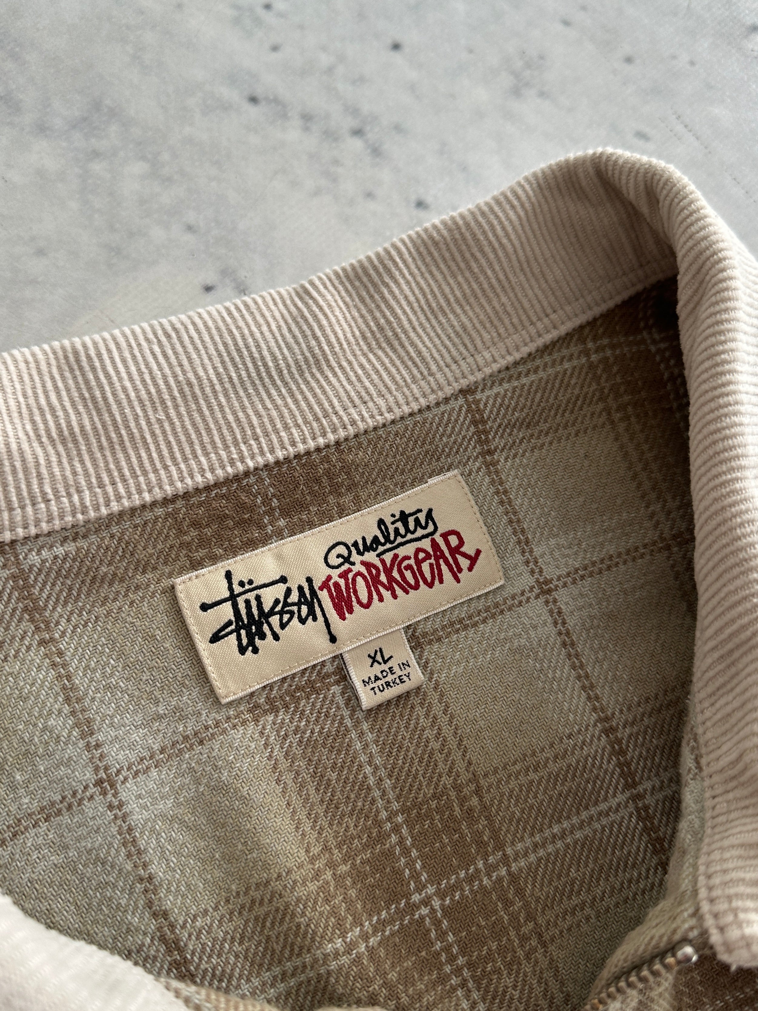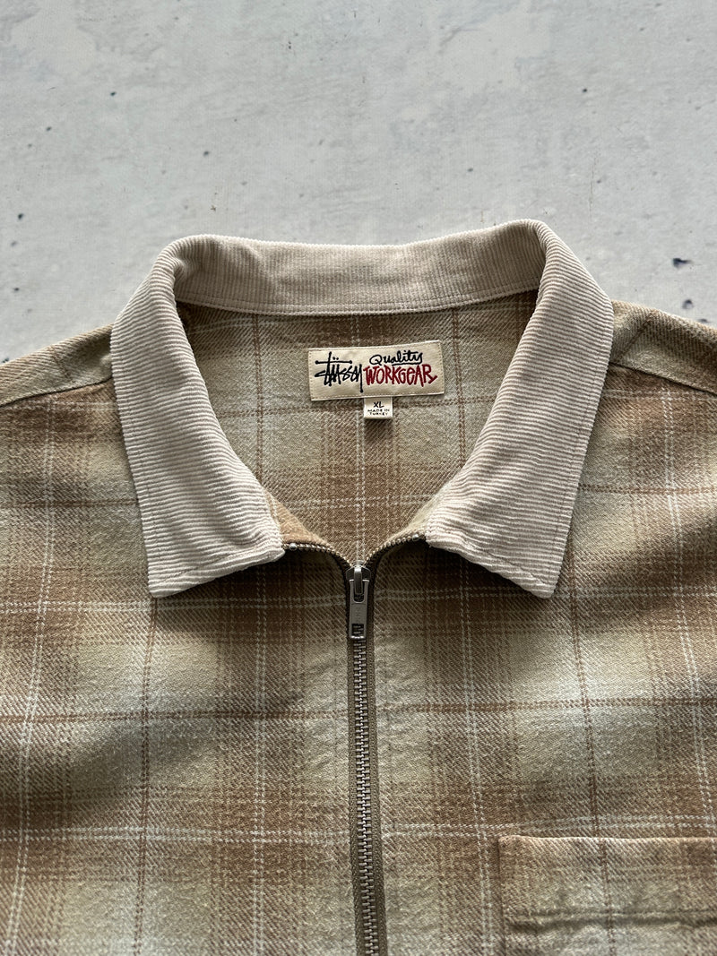 Stussy Quality Workgear Frank Plaid Zip Up Overshirt (XL)